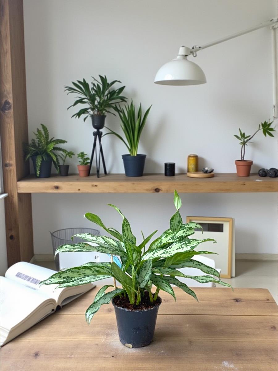 Aglaonema Silver Queen, zarif gümüş-yeşil yaprak deseni ve kompakt formuyla iç mekân bitkileri arasında en dayanıklı ve en gösterişli türlerden biridir. Havadar yapısı, kolay bakımı ve modern görünümü sayesinde ev ve ofislerde sıkça tercih edilir.