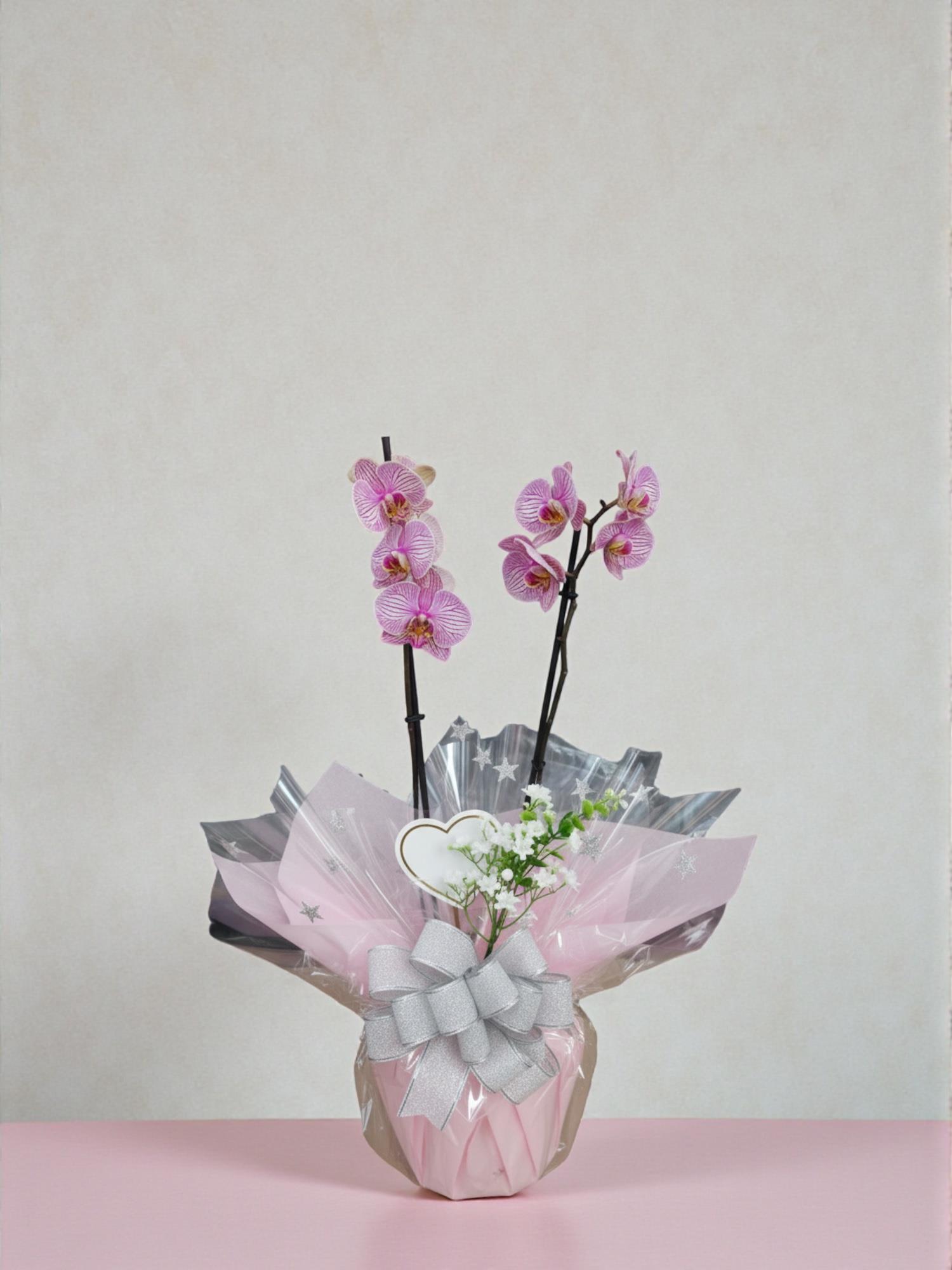 Sıradan bir çiçek değil, asaletin yaşayan en zarif formu. İthal Mor Orkide, standart türlerin aksine çift dal (double stem) yapısıyla bulunduğu ortama zenginlik ve görsel bir dolgunluk katar. Sevgilinizin ofisinde veya evinin en güzel köşesinde, her baktığında sizi hatırlatacak canlı bir sanat eseri gibidir. Morun en büyüleyici tonuyla "Sana hayranım" demenin sessiz ama en güçlü yoludur.