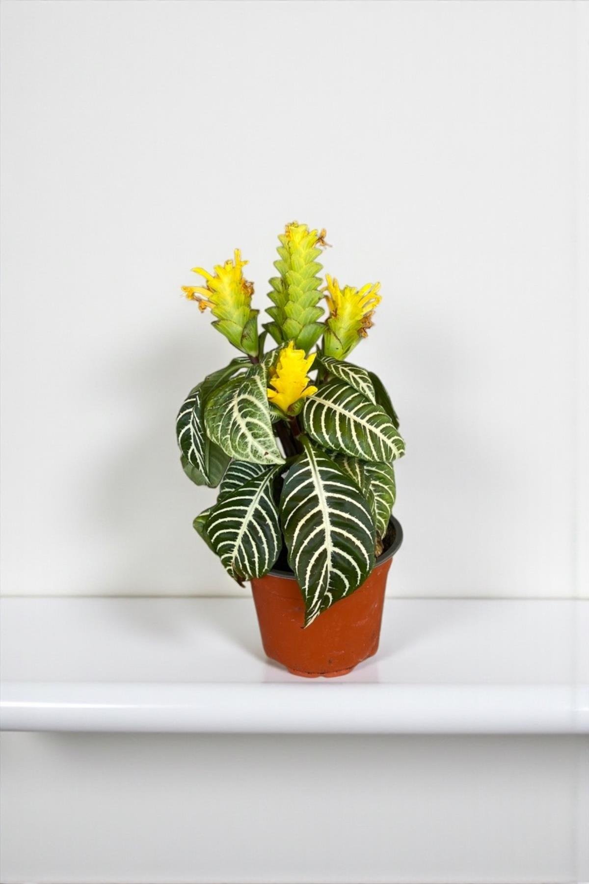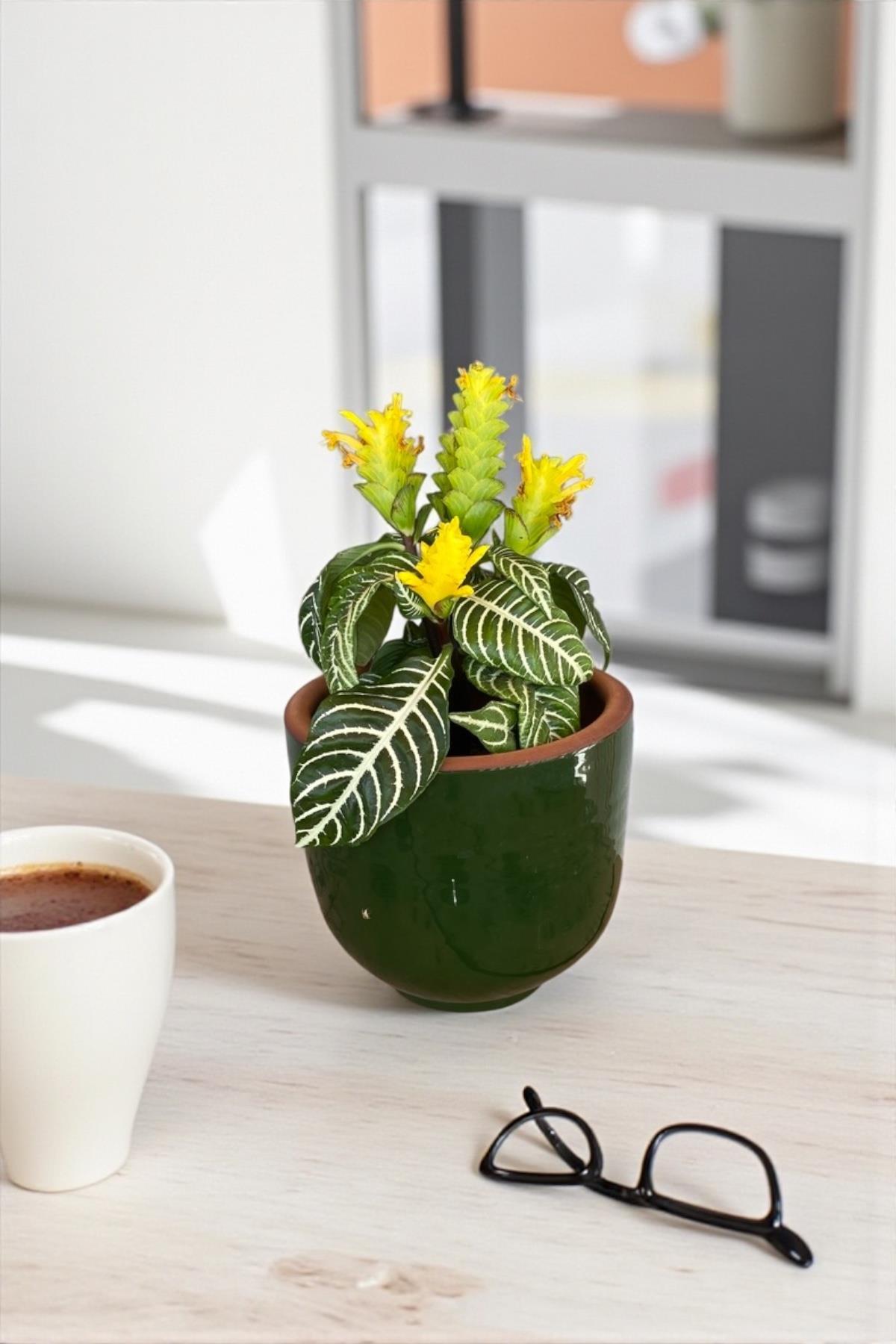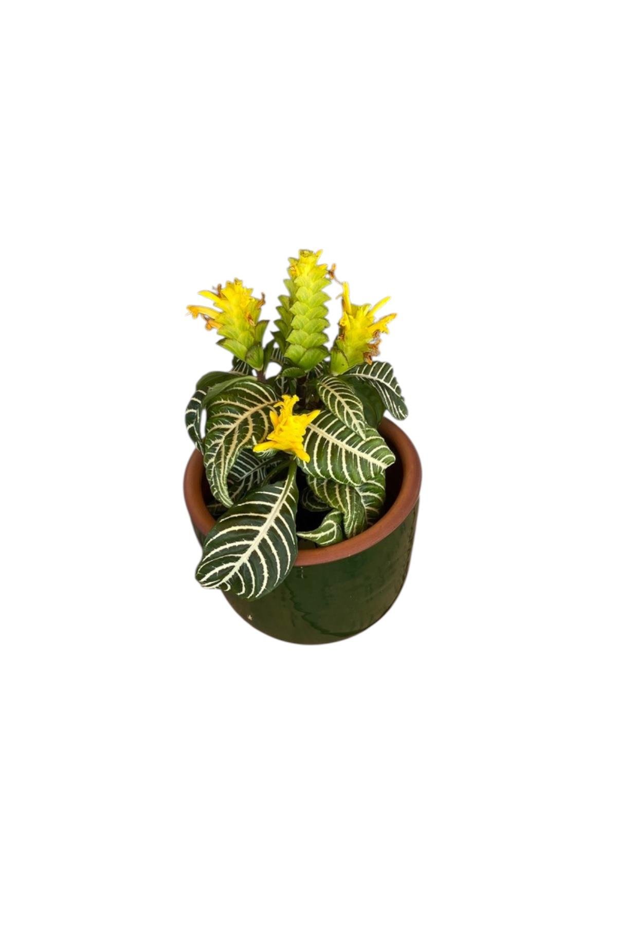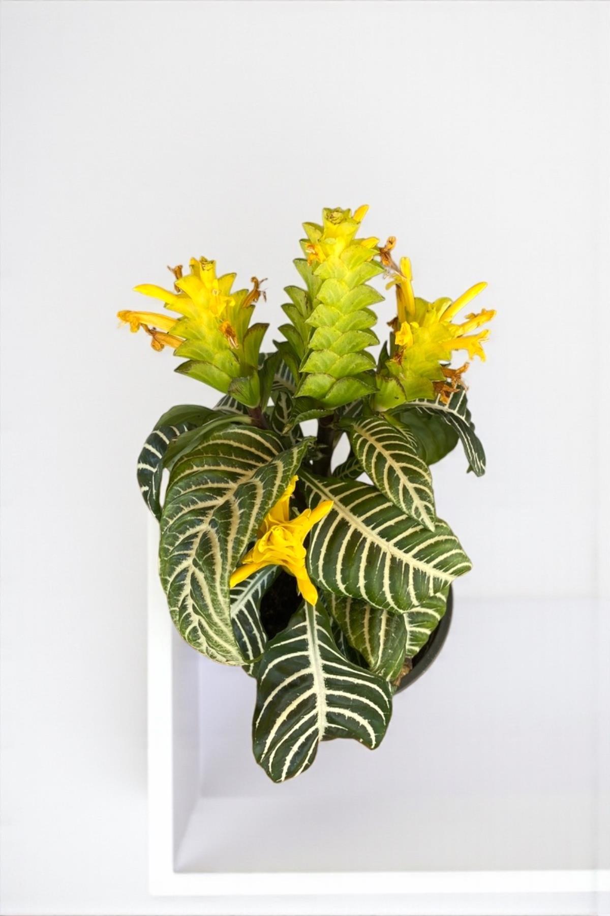 Aphelandra squarrosa (Zebra Bitkisi) Orta Boy, koyu yeşil yaprakları üzerindeki göz alıcı beyaz damarları ve çarpıcı sarı çiçekleriyle tropik bir görsel şölen sunar. Zebra desenli yaprakları sayesinde bulunduğu ortama hem canlılık hem de egzotik bir hava katar.