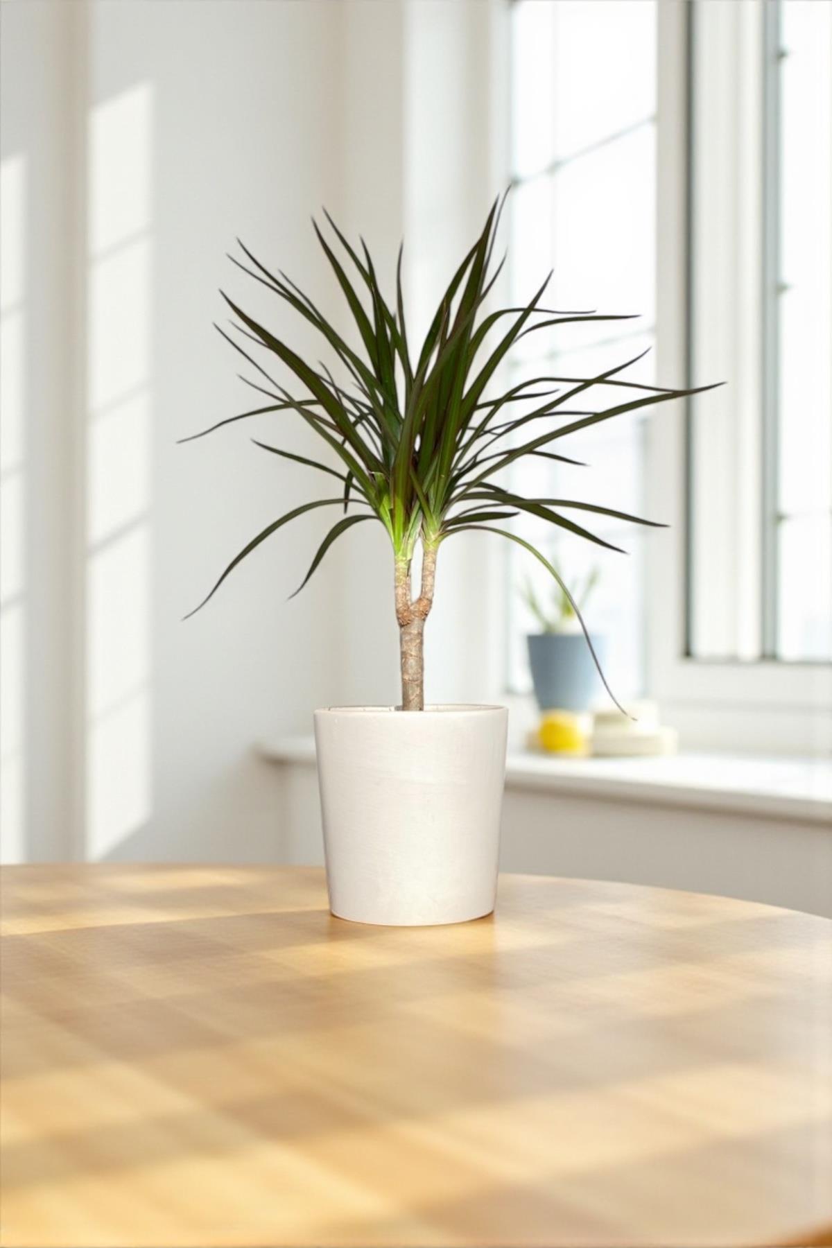 Dracaena Marginata’yı modern seramik, taş veya metal saksılarla kombinleyerek evinizde ya da ofisinizde sofistike bir dekoratif obje haline getirebilirsiniz. Özellikle köşelerde ve geniş alanlarda odak noktası yaratır.
