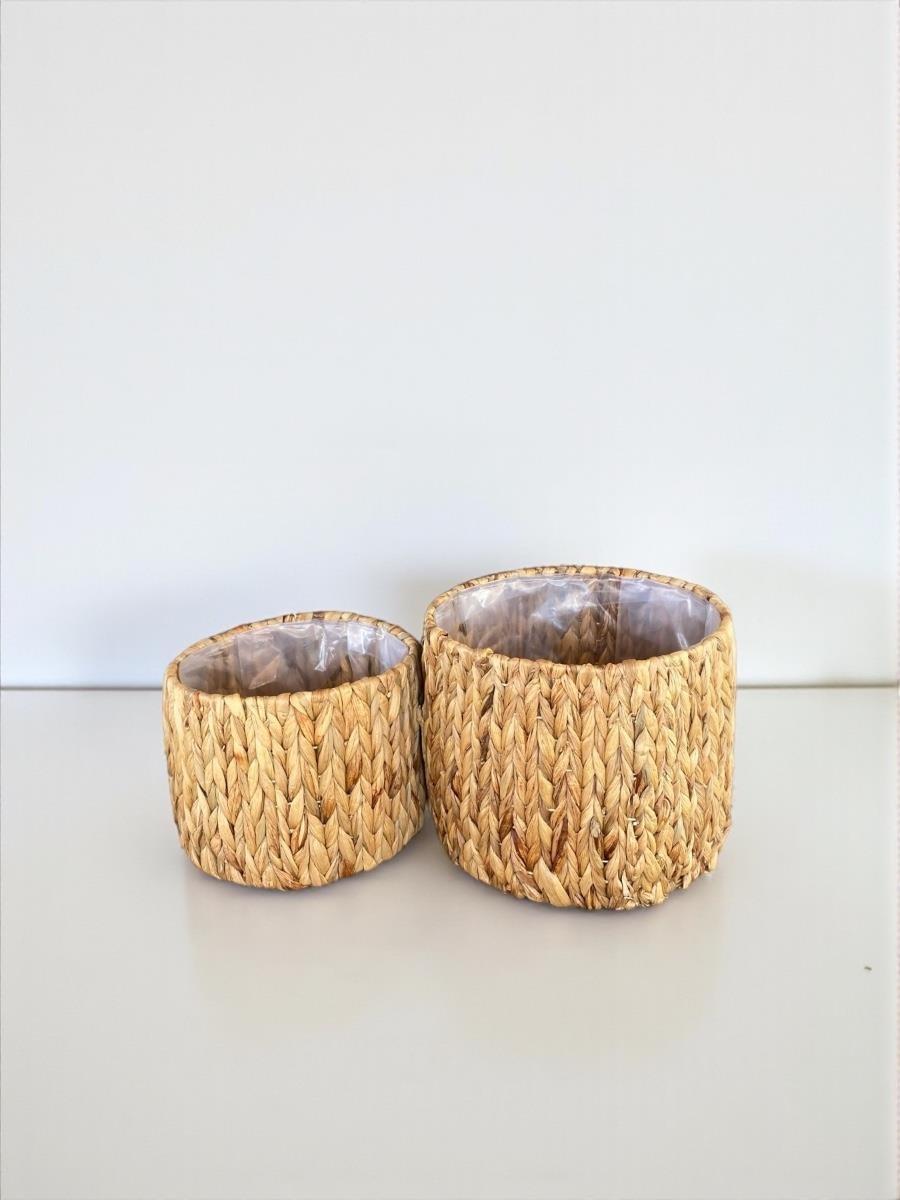 Dekoratif Kulplu Hasır Yuvarlak Saksı