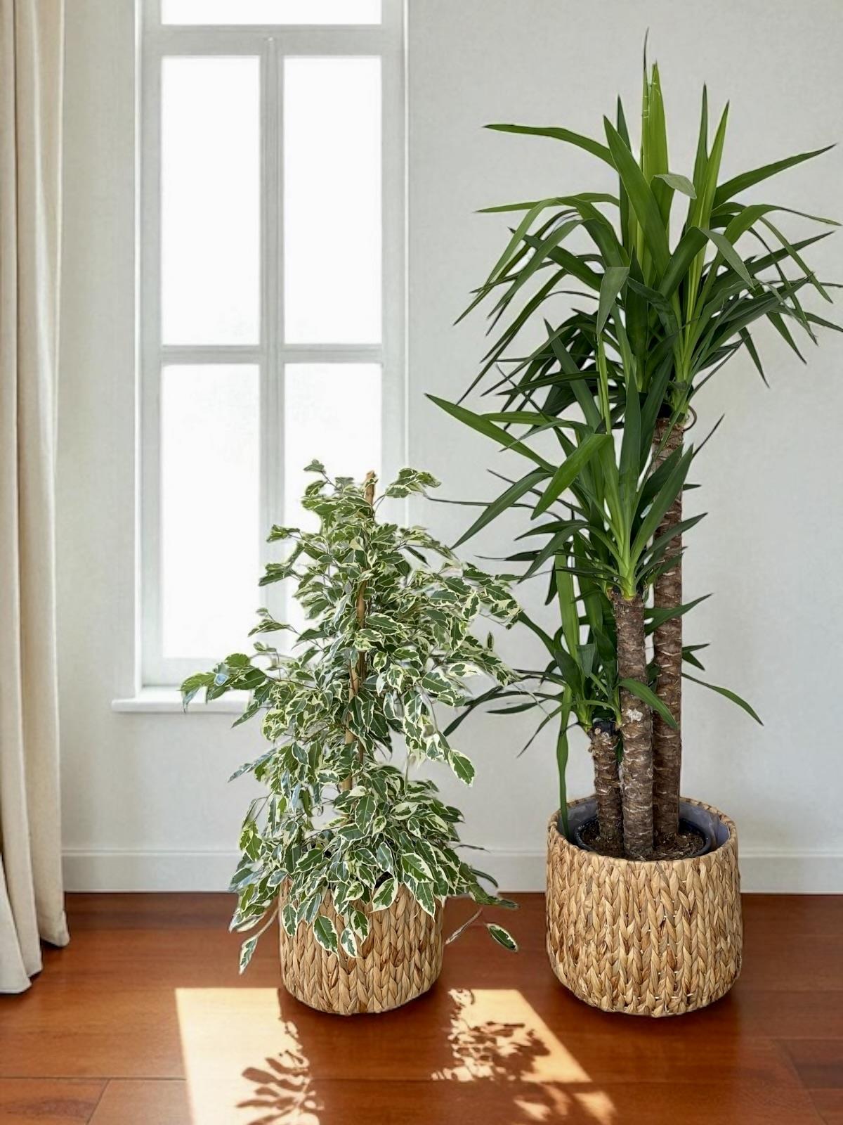 🌿 Kampanyalı Popüler Bitki Seti – Alacalı Benjamin Starlight + Yuka 3 Gövdeli 150 cm 🌿