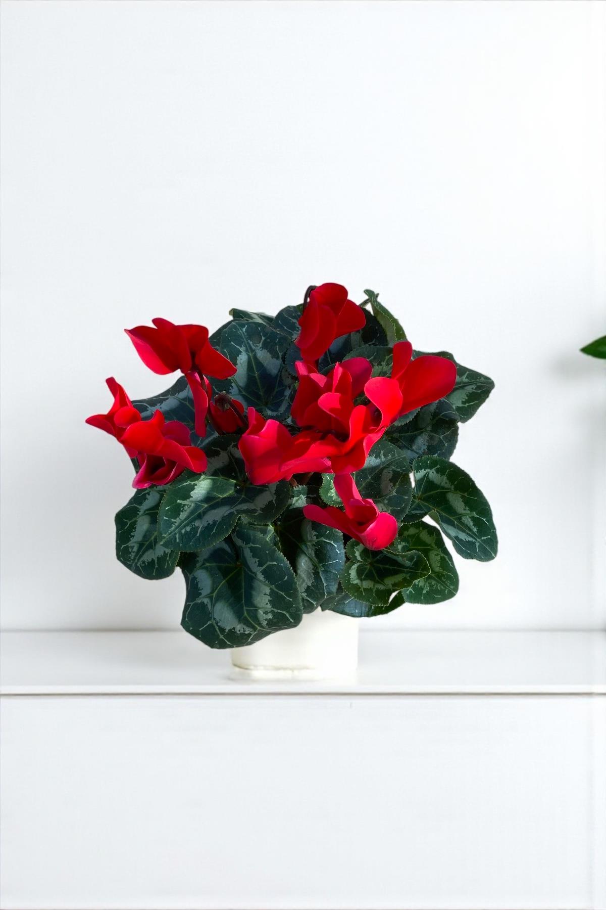 Kırmızı Siklamen (Cyclamen) Çiçeği Canlı Fırfırlı Bitki