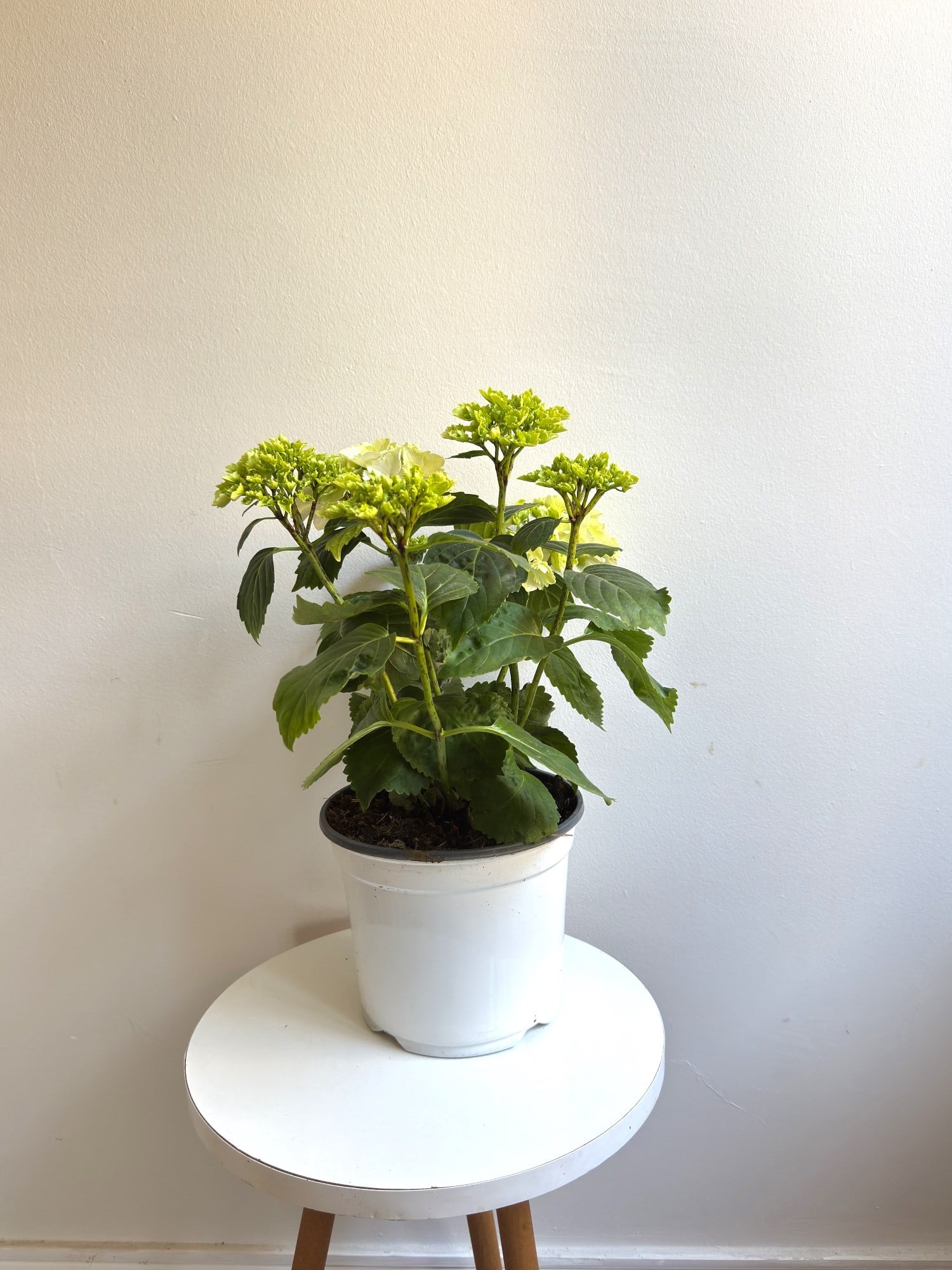 - Çiçek/Yaprak: İri top formlu çiçek kümeleri, geniş tırtıklı yeşil yapraklar
