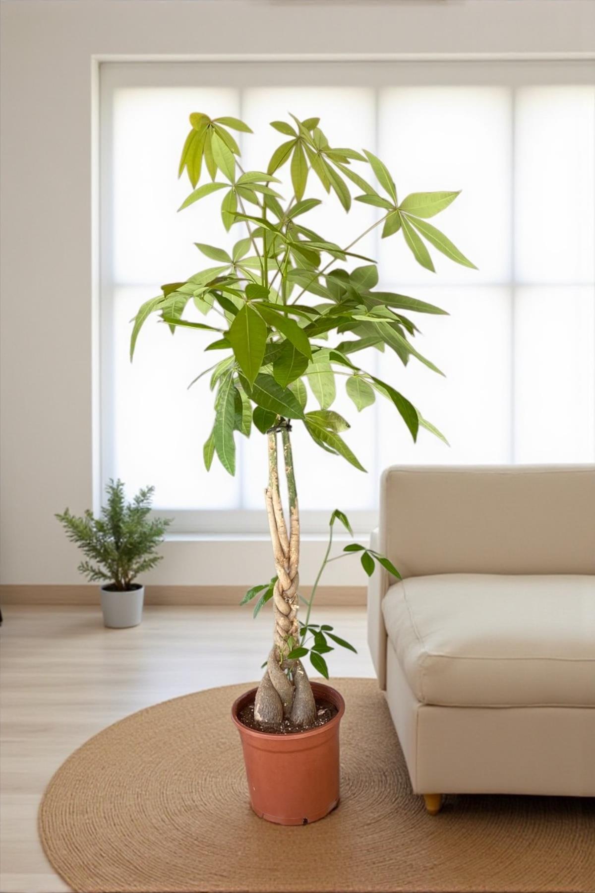 Şans ve bereket sembolü olarak bilinen Pachira Aquatica XL, 130–150 cm boyuyla salon ve ofisler için etkileyici bir dekoratif çözüm sunar. Kalın gövdesi ve geniş yeşil yapraklarıyla tropikal bir görünüm sağlar. Dayanıklı ve bakımı kolay olan bu bitki, hem estetik hem de Feng Shui açısından enerji katan bir seçimdir.