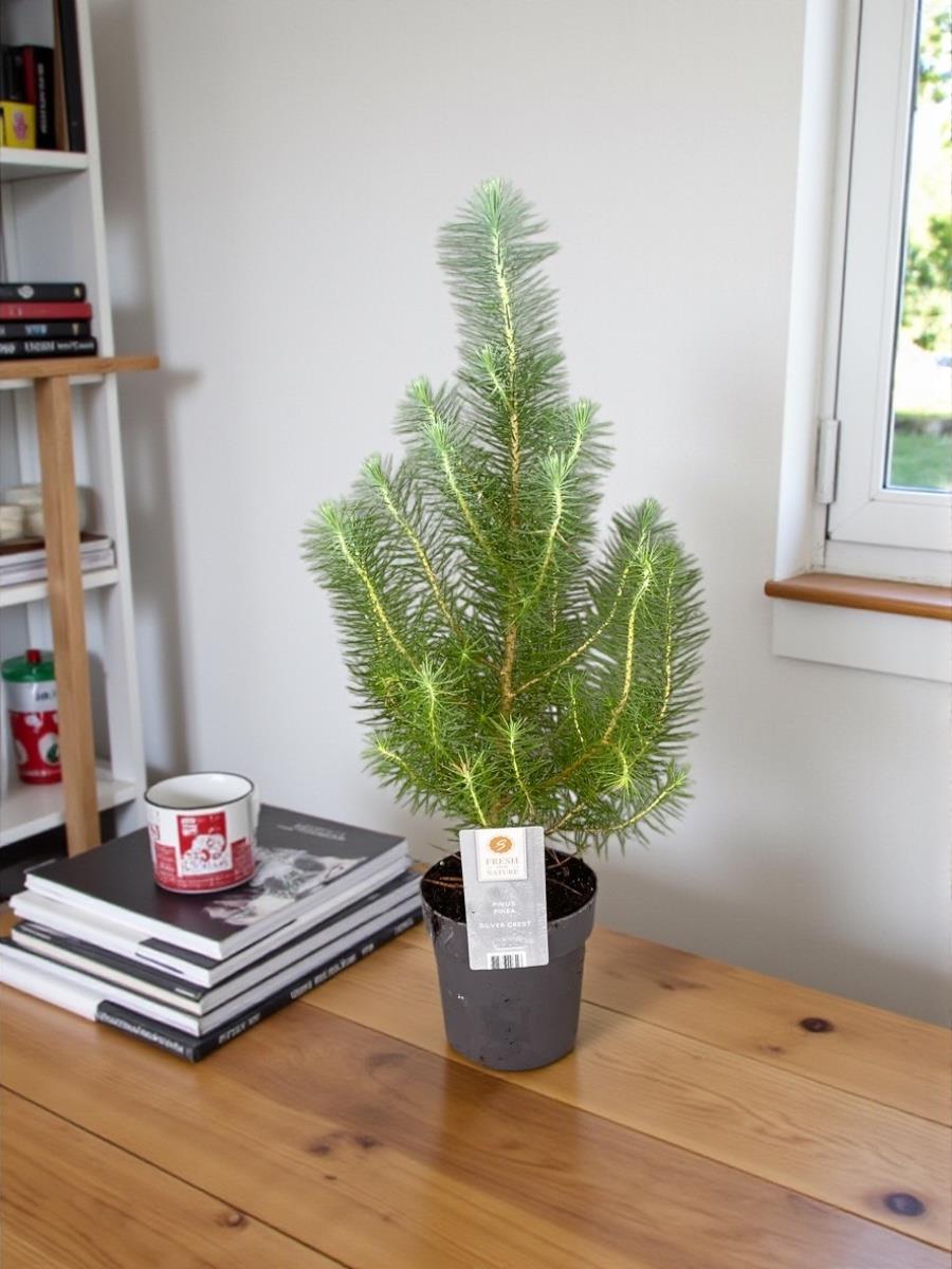 Silver Crest’i beyaz, beton görünümlü veya doğal ahşap saksılarla kombinleyerek sade ve modern bir yılbaşı masa dekoru oluşturabilirsiniz. Yemek masasının ortasında, çalışma masasında veya girişte “kış köşesi” yaratmak için mükemmel bir seçimdir.