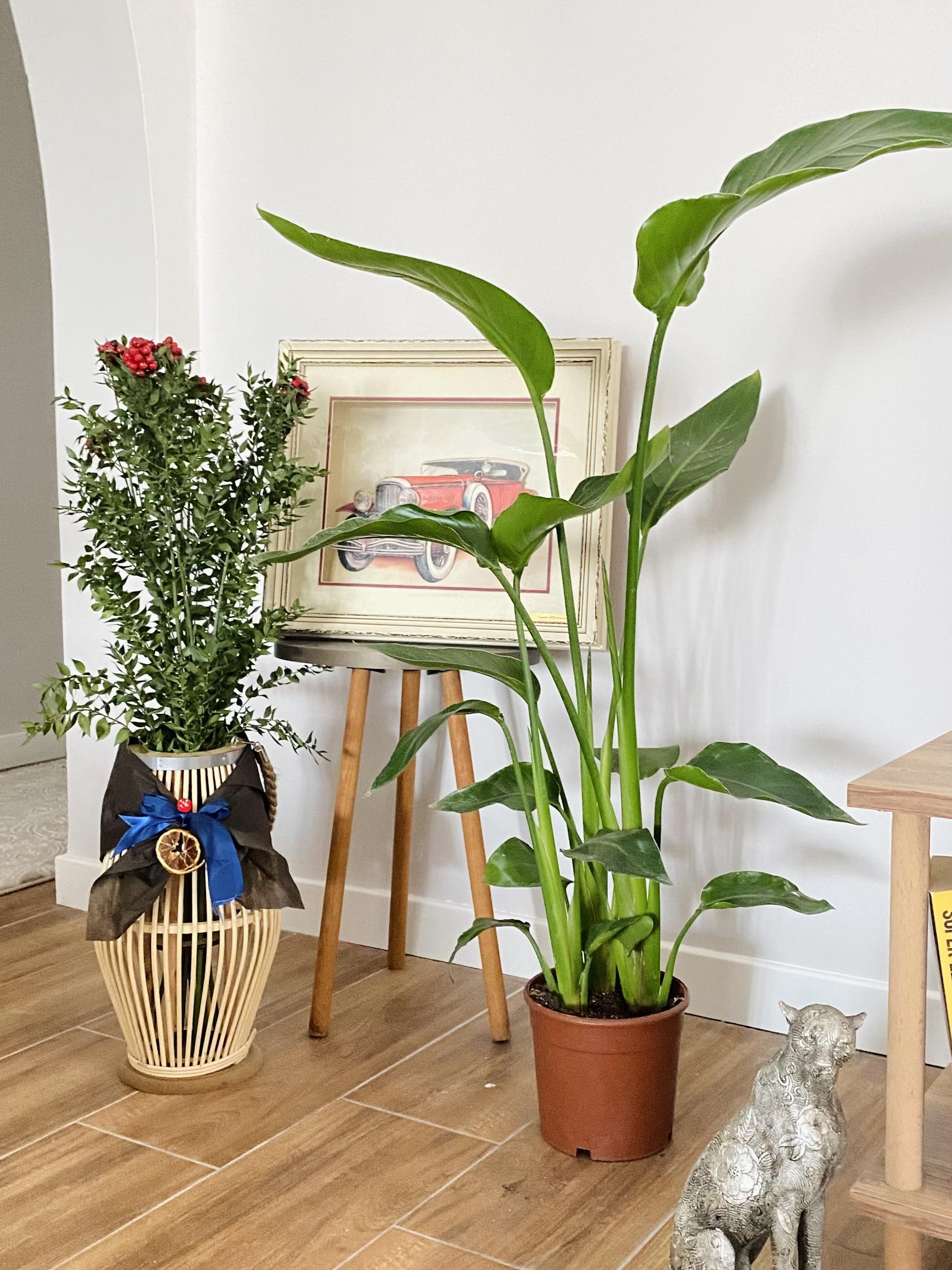 Starliçe (Cennet Kuşu), üç güçlü gövdesi ve geniş, parlak yapraklarıyla ev ve ofislerde tropik bir şıklık yaratır. 100-120 cm boyu, mekanlarda dolgun ve etkileyici bir dekoratif unsur oluşturur.