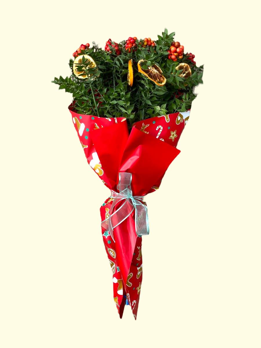 Süslenmiş Hediyelik Kokina Buketi Büyük Boy XLarge, yılbaşı ruhunu en etkileyici şekilde yansıtan kırmızı-yeşil buket tasarımıdır. Büyük boy formu, dolgun görüntüsü ve süsleme detayları sayesinde hem sevdikleriniz için anlamlı bir hediye hem de evinizde dikkat çeken bir yeni yıl dekoru oluşturur.