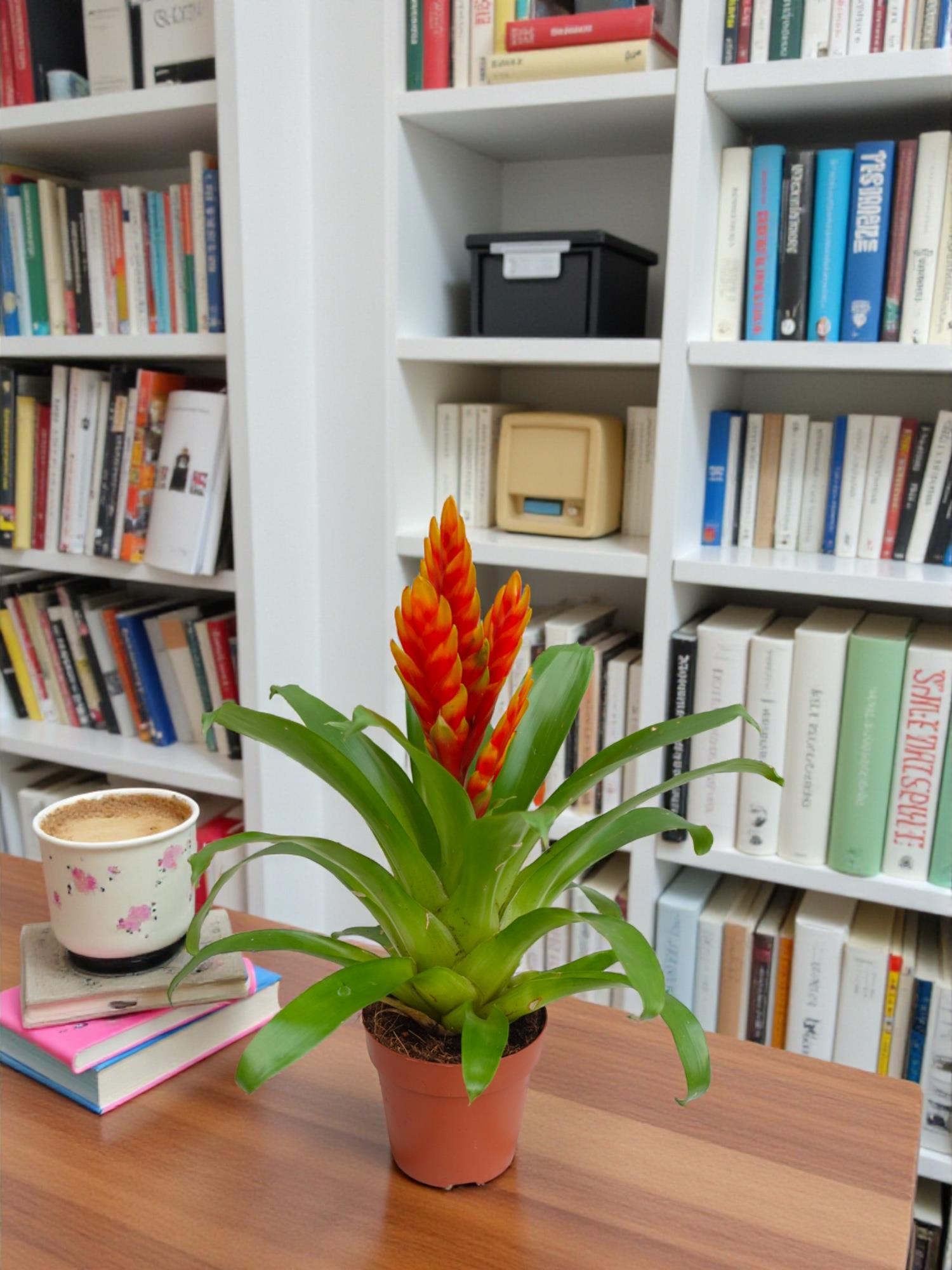 Turuncu Vriesea, özellikle ahşap mobilyalarla veya yeşil yapraklı diğer bitkilerin arasında kullanıldığında harika bir uyum sağlar. Doğal hasır saksılarla kombinleyerek bohem bir tarz yakalayabilirsiniz.