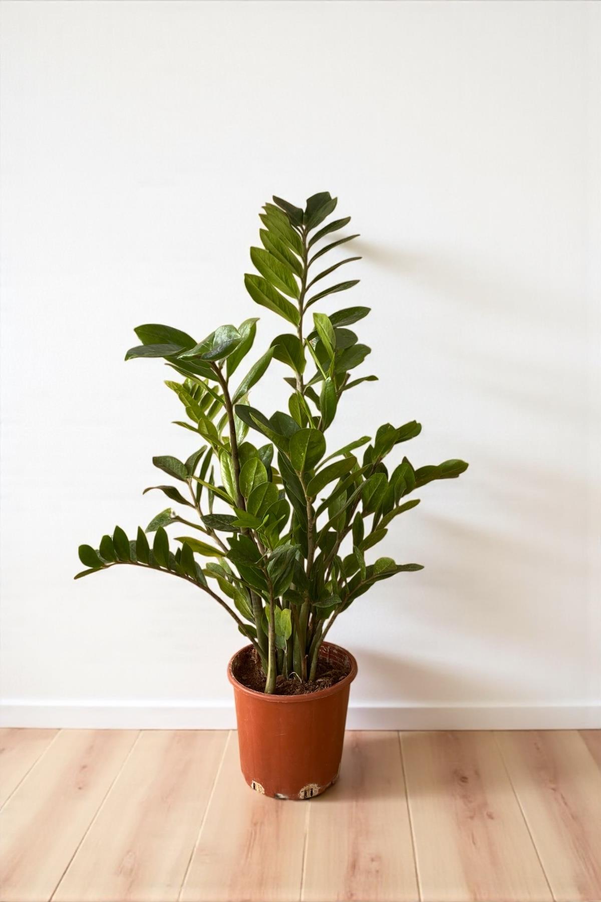 Zamioculcas zamiifolia XL , yeşil yapraklarının zarif kıvrımlarıyla doğanın bir ressamının elinden çıkmış gibi, sade güzelliğiyle herkesi büyüleyen bir bitkidir.